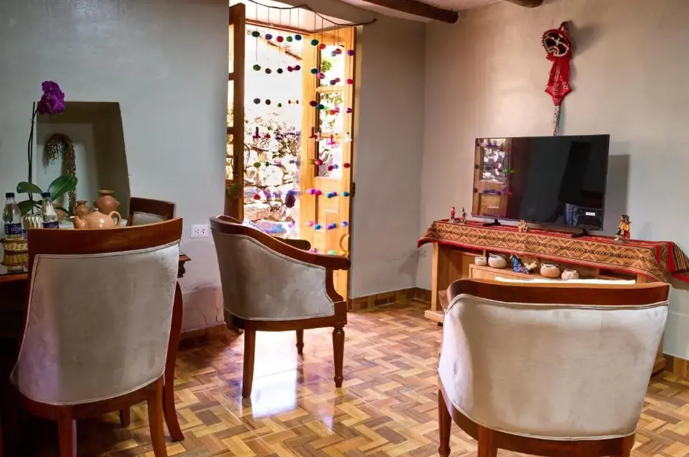Mais Informações sobre CocatamboLocalizado em Calle Chachacomayoc, Ollantaytambo, Peru, o Rumi Wasi Inn oferece hospedagem com diversas facilidades. Os hóspedes podem aproveitar serviços como traslado do aeroporto, estacionamento, quartos para família e acesso à internet gratuita. O local conta com banheiros privativos, TV de tela plana e ar-condicionado em seus apartamentos.